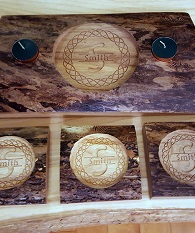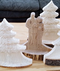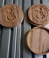 Products are available in a variety of woods and finishes, and can be customized with images and text. We also work with plastics and soft metals such as aluminum and brass.
